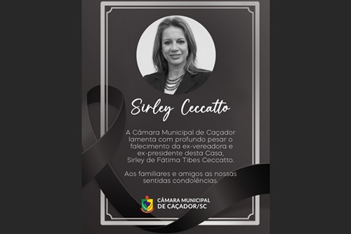 A Câmara Municipal de Caçador emitiu nota externando o seu profundo pesar pelo falecimento da ex-vereadora e presidente da Casa, Sirley Ceccatto, ocorrido nesta quarta-feira, 22 de março. Ela ocupou uma cadeira no Legislativo nos mandatos de 2009 a 2012 e de 2017 a 2020, sendo a primeira e única mulher até o momento a ser presidente do legislativo no município.