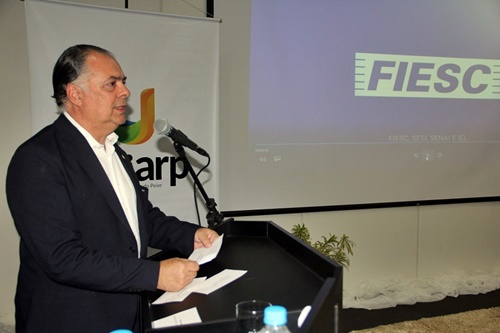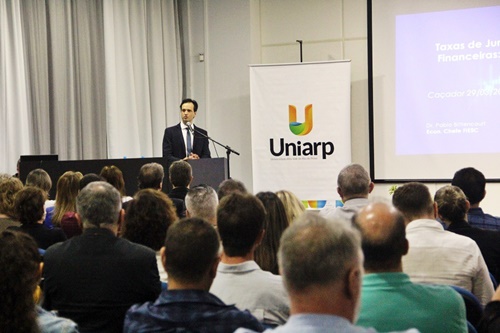 A palestra foi realizada no auditório da Reitoria da Uniarp e ministrada pelo economista-chefe da FIESC, Dr. Pablo Felipe Bittencourt