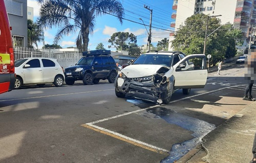 Um acidente de trânsito envolvendo dois veículos foi registrado na manhã deste sábado, 22 de abril, no cruzamento das ruas Porto União e Conselheiro Mafra, no Centro de Caçador. Se envolveram na colisão uma Fiat Strada e um taxi Fiat Cronus, ambos com placas de Caçador.