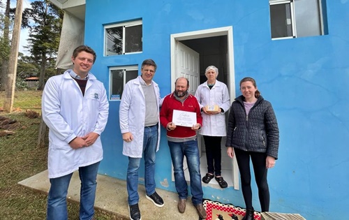 A Prefeitura de Caçador, através da Secretaria de Agricultura, realizou, nesta terça-feira, 6, a entrega do certificado de registro do Serviço de Inspeção Municipal (SIM) de Caçador, para a Queijaria Muller, que está localizada na Colônia Aparecida, no Distrito Taquara Verde.