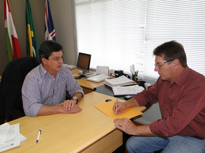 Nesta terça-feira (19) o secretário de Estado do Desenvolvimento Regional de Caçador, Gilberto Comazzetto, e o empreiteiro da empresa PlanaTerra, Moacir Tiecher, assinaram termo aditivo de prazo para a pavimentação da SC-455, em Macieira.