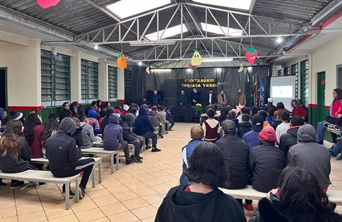 A Escola Thomaz Padilha celebrou o centenário de Taquara Verde, nesta terça-feira, 13 de junho, realizando diversas atividades de resgate histórico, oficinas, sapecada e mateada, homenagens e apresentações culturais.