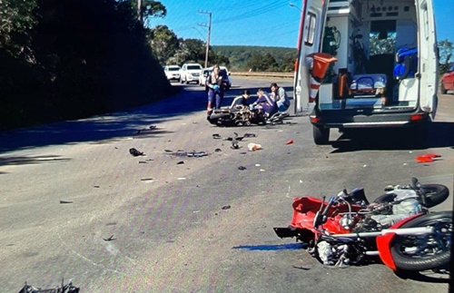 Um grave acidente de trânsito envolvendo duas motocicletas na tarde desta quarta-feira, 5 de julho, deixou duas pessoas feridas, uma delas em estado grave. A colisão ocorreu na Rodovia Honorino Moro, nas proximidades da Rondil Ferragens.