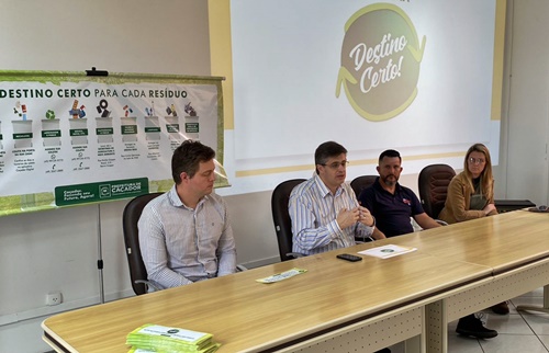A Prefeitura de Caçador lançou na tarde desta quinta-feira, 27 de julho, a campanha “Destino Certo”, que visa a conscientização e orientação dos cidadãos quanto à destinação de resíduos. A campanha contará com material impresso, jingle, vídeos e imagens, nas redes sociais da Prefeitura e imprensa em geral.