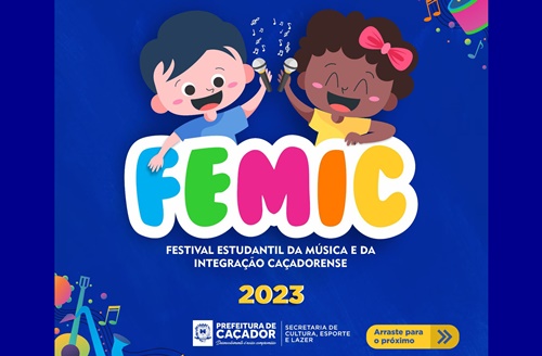 A Prefeitura de Caçador divulga os 12 classificados para a final do Festival Estudantil da Música e da Integração Caçadorense (FEMIC), que acontece no dia 20 de outubro, na UNIARP. Estão participando crianças e adolescentes das escolas de Caçador, matriculadas na rede municipal, estadual, federal ou particular.