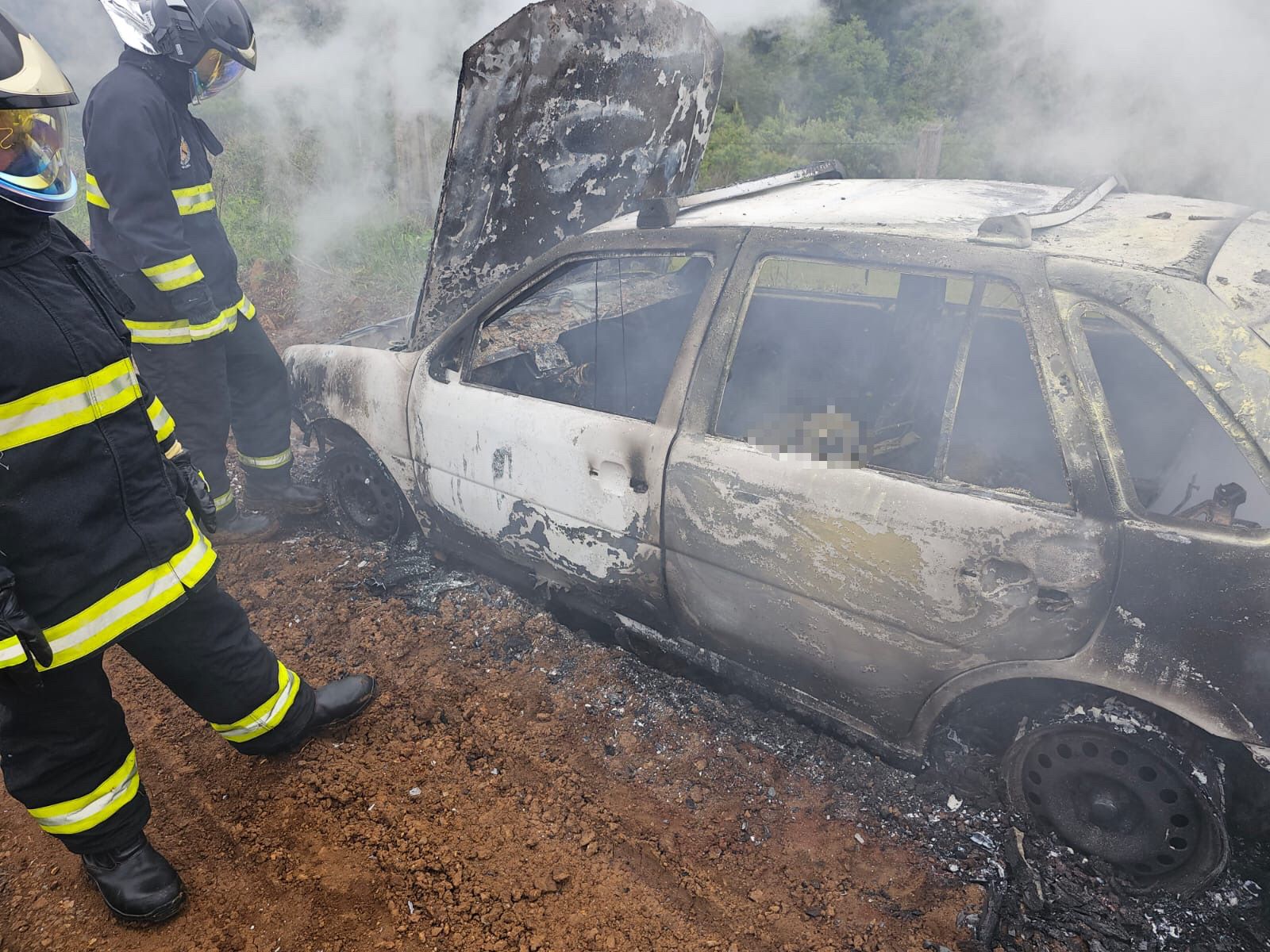 Dentro do veículo havia um corpo já carbonizado pelas chamas. Não se tem a identificação e nem as causas do incêndio.