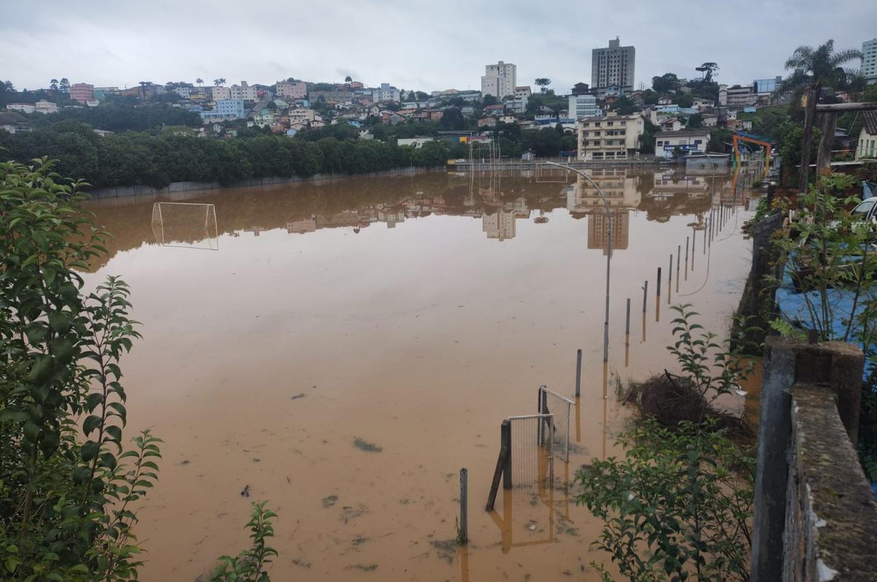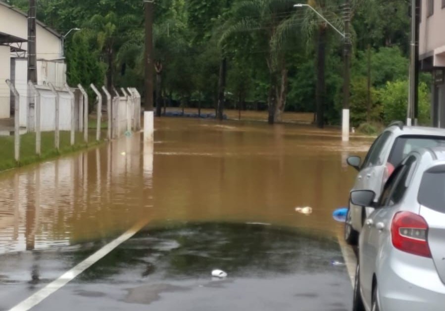 Com o solo encharcado e o volume de chuvas alto nas cabeceiras, os rios do Peixe e Caçador saíram do leito e alagaram diversos pontos da cidade.