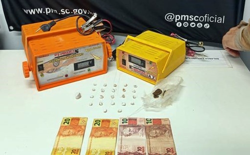 Além dos entorpecentes, foram encontrados dois carregadores de bateria da marca "Sentinela" de procedência duvidosa.