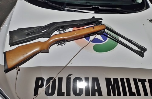 Os policiais abordaram o morador da residência, de 35 anos, que autorizou a entrada dos agentes. No local, foram apreendidas duas espingardas calibre .22, sendo uma de pressão adaptada para disparar projéteis.