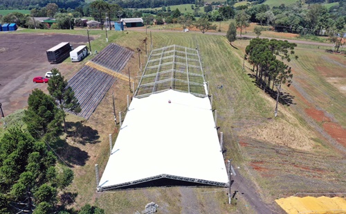A estrutura da ExpoCaçador90 já está sendo montada, no Parque das Araucárias. O evento, que já é um sucesso, acontece de 22 a 25 de março. A Expo contará com mais de 400 expositores, com expectativa de mais de 100 mil pessoas passando pelo Parque durante os 4 dias do evento.