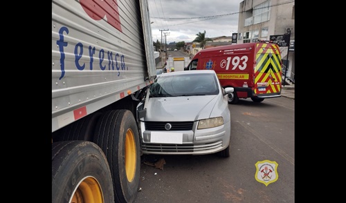O Corpo de Bombeiros Voluntários de Caçador foi acionado nesta terça-feira, 28 de maio, por volta de 15h25 para atender um acidente de trânsito na Rua Laguna, no Bairro Bom Jesus. Chegando no local foi confirmado o acidente envolvendo um caminhão e um carro de passeio.