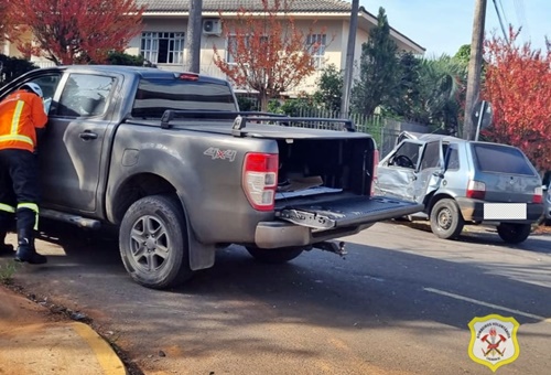 O Corpo de Bombeiros Voluntários de Caçador atende por volta de 9h50 desta quinta-feira, 6 de junho, uma colisão entre caminhonete e um carro, na Rua Venezuela, Bairro Reunidas, nas proximidades do Hiospital Maice.