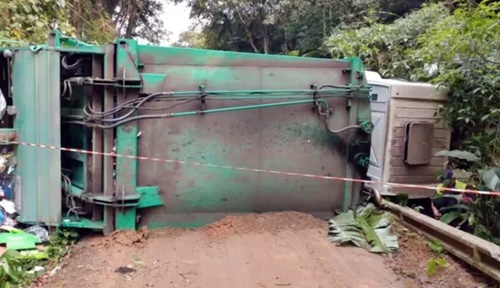 De acordo com os bombeiros, o caminhão de coleta de lixo estava subindo a rua, quando perdeu força e começou a descer de ré. O motorista direcionou o veículo para o barranco, que acabou tombando.