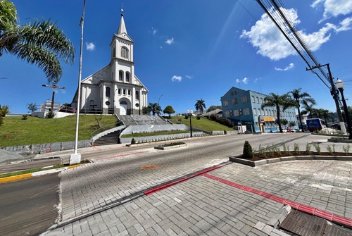As pessoas que passaram em frente à Catedral nas últimas semanas notaram uma intensa movimentação de obras no local. Trata-se da revitalização de todo o eixo cultural e histórico de Caçador, o Calçadão Vertical, que liga a estação ferroviária à Catedral.