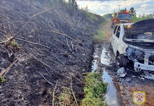 O Corpo de Bombeiros Voluntários de Caçador foi acionado nesta quarta-feira, 30 de outubro, por volta das 16h15, para atender um incêndio em um veículo na Linha Faxinal São Pedro, área rural do município.