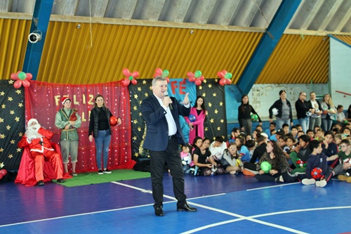 Colaboradores da UNIARP, incluindo o reitor Dr. Neoberto Balestrin e o vice-reitor Dr. Joel Baade participaram do evento, auxiliando na entrega das bolas para as crianças. “É um momento muito especial para todos nós. Na verdade, este é o verdadeiro presente, poder ajudar e ver a alegria no rosto das crianças. Agradeço todos que auxiliaram nesta campanha e especialmente, a direção da escola por nos acolher de forma tão carinhosa”, destaca o reitor Dr. Neoberto.