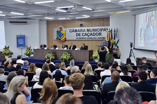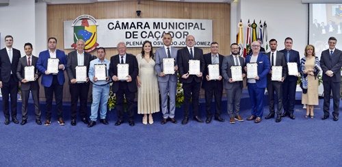 A Justiça Eleitoral diplomou, na noite desta terça-feira (16), os vereadores de Caçador eleitos no dia 6 de outubro e que irão compor a próxima Legislatura, a partir de 1° de janeiro do ano que vem. A solenidade aconteceu na Câmara Municipal e foi presidida pela juíza eleitoral Flávia Carneiro de Paris.
