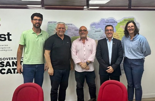 Nesta quarta-feira (29), ele recebeu o empresário caçadorense e diretor da FACISC, Henrique Basso, ao lado do diretor de atração investimentos para inovação em SC, Luiz Maranzatto, e da consultora de investimentos da InvestSC, Carol Laís Schüler. O filho de Basso, Henrique Basso Filho, também acompanhou o encontro.