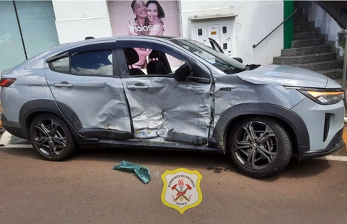 O Corpo de Bombeiros Voluntários de Caçador foi acionado para atender um acidente de trânsito envolvendo dois veículos no centro da cidade neste domingo por volta das 13h55min na esquina das ruas Benjamin Constant e Carlos Sperança.