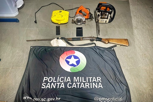 Após buscas intensas em região de mata, a Polícia Militar capturou dois homens envolvidos em um furto ocorrido na tarde desta segunda-feira, 17 de fevereiro, na localidade Faxinal São Pedro, divisa entre Caçador e Lebon Régis. Durante a ação, os policiais recuperaram diversos objetos furtados, entre eles uma arma de fogo.