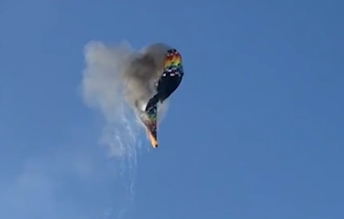 O cesto em chamas atingiu ao chão em alta velocidade, às margens da Rodovia SC-108. A aeronave caiu em uma área rural nas proximidades de um posto de saúde.