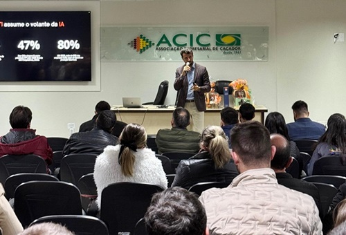Douglas Santos, coordenador do Núcleo de TI da ACIC destaca que o evento foi um grande sucesso, com a presença de cerca de 80 participantes, entre empresários, profissionais da área de tecnologia e interessados no tema. Ele agradeceu a CIGAM pela enriquecedora contribuição. “A palestra proporcionou reflexões valiosas sobre como a inteligência artificial está transformando a forma de gerir negócios, trazendo insights práticos e estratégicos para aplicação imediata no dia a dia corporativo. A abordagem clara e dinâmica do palestrante conquistou o público e gerou diversos feedbacks positivos, destacando a relevância do conteúdo e a qualidade da apresentação. Eventos como este reforçam o compromisso do nosso Núcleo e da ACIC em promover conhecimento, inovação e desenvolvimento para o nosso ecossistema empresarial”, comentou.
