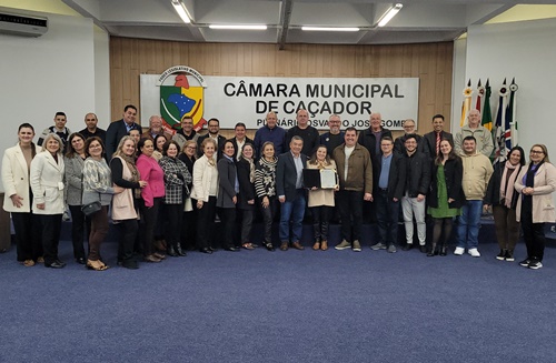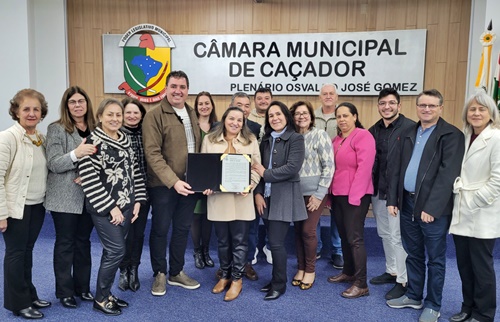A Câmara Municipal de Caçador aprovou na terça-feira, 8 DE JULHO, uma Moção de Aplausos a Neide Trento Yoshida, em reconhecimento à sua trajetória exemplar e aos relevantes serviços prestados à Educação Especial no município. A homenagem foi proposta pelo vereador Rubiano Schmitz, que destacou o legado de dedicação, amor e comprometimento da educadora ao longo de mais de quatro décadas de atuação na APAE de Caçador.