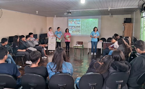 Durante o período da manhã, os estudantes participaram de uma apresentação conduzida pela acadêmica Rafaela Salvalagio, responsável pelo Projeto de Resgate das Benzedeiras. Ela compartilhou a trajetória da iniciativa, desde sua criação até a construção do “relógio biológico”, representado por uma maquete que despertou a curiosidade dos alunos. O modelo ilustrou de forma didática a relação entre os horários do dia e o uso adequado das plantas medicinais.