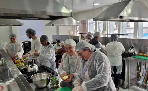 O objetivo foi conscientizar os idosos sobre os benefícios do consumo regular e da higienização correta das frutas, ressaltando a contribuição desses alimentos para a prevenção de doenças e a promoção do bem-estar. A atividade contou com uma etapa prática, na qual os participantes puderam realizar a higienização das frutas e preparar coletivamente uma salada de frutas, que foi posteriormente compartilhada entre o grupo. O momento foi marcado pela integração, troca de experiências e incentivo à adoção de hábitos saudáveis de forma prazerosa e acessível.