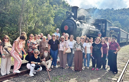 Participantes da Universidade Aberta da Maior Idade (UAMI) da UNIARP Caçador realizaram, no dia 7 de abril de 2026, um passeio cultural às cidades gêmeas de Porto União (SC) e União da Vitória (PR), com o objetivo de conhecer o Projeto Trem das Etnias.