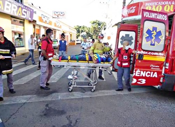 Com o impacto da batida, o motociclista caiu na via e sofreu suspeita de fratura no braço esquerdo e escoriações pelo corpo. Ele foi levado pelos bombeiros voluntários ao Pronto Socorro do Hospital Maicé para atendimento médico.