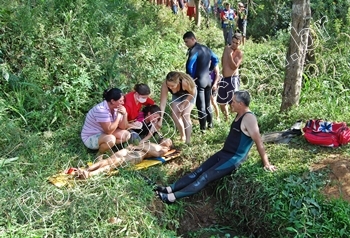 Segundo um rapaz de aproximadamente 20 anos, que estava no local na hora do ocorrido, o garoto teria pulado de cima de uma árvore para mergulhar, porem não mais retornou á superfície da água. “Quando percebi que ele não voltava, pulei e tentei achá-lo, mas não consegui. Então chamamos os bombeiros para procurar”, revelou.