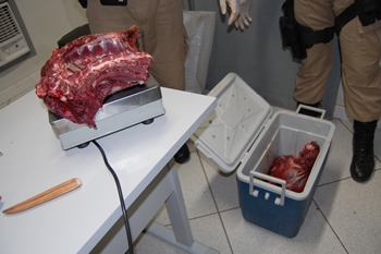 Durante a operação, ás margens da rodovia, um VW Gol e uma caminhonete Peugeot 507, ambos de Caçador receberam ordem de parada, sendo que e após revista pessoal nos indivíduos, um revólver foi encontrado na cintura de um dos motoristas. Revistando o porta-malas do Gol e a caçamba da caminhonete, a PM encontrou o restante das armas e aproximadamente 12 quilos de carne de Veado, animal ameaçado de extinção.