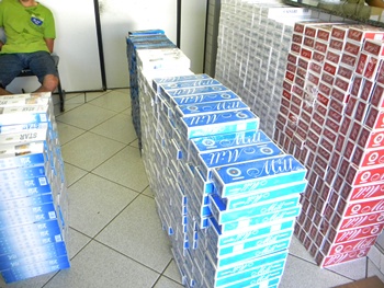 Após averiguação interna no carro, os policiais comprovaram a veracidade da denúncia, e deram voz de prisão aos dois ocupantes do veículo. No interior do automóvel havia 898 maços com 10 unidades de cigarros, sendo 100 da marca Star, 250 Calvert, 149 Euro, 99 Fox, e 300 da marca Mill.