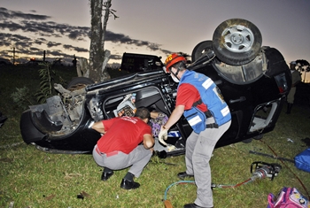 Uma saída de pista seguida de capotamento no início da noite desta terça-feira, 3, resultou em três pessoas feridas. O acidente aconteceu na Rodovia SC 302 proximidades do Posto da Polícia Rodoviária em Calmon. Uma das vítimas ficou presa nas ferragens e precisou ser resgatada pelo Corpo de Bombeiros Voluntários de Caçador.