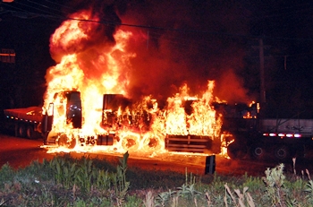 Um grave acidente no semáforo da Rodovia Honorino Moro (Cruzamento do Santa Fé), envolvendo dois caminhões movimentou a corporação de Bombeiros Voluntários de Caçador. Cerca de 40 bombeiros trabalharam na operação de combate ao incêndio que ocorreu após a colisão.