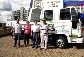 A Fundação Municipal de Meio Ambiente (Fundema) adquiriu um Ford Cargo 816 com caçamba basculante, no valor de R$ 159.500,00. O veículo foi pago com recursos do Conselho Municipal de Saneamento Ambiental. A entrega oficial do caminhão foi feita à presidente da Fundação, Denise Chiarello, pelo prefeito Imar Rocha; secretário de Administração e Fazenda, Celso Thomé; nessa segunda-feira (9).