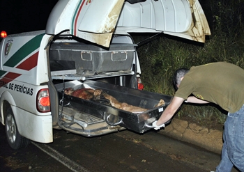 De acordo com informações, o homem apresentava trauma de crânio grave, rosto dilacerado, fraturas expostas nas pernas, braços e outros ossos do corpo. A suspeita é de que a morte tenha sido provocada por atropelamento, já que haviam marcas de freada de veículo próximo de onde estava o corpo e também a uma distância de aproximadamente 20 metros do corpo, local onde o carro teria atingido a vítima. Marcas de sangue também foram encontradas em ambos os locais.