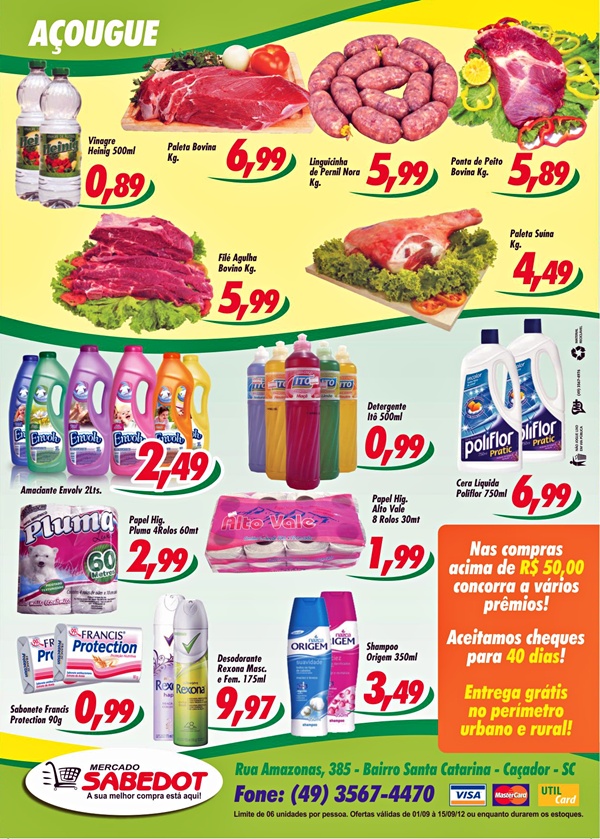 Venha nos visitar e confira nossas ofertas de açougue. Frutas e verduras a partir de R$ 0,99 o kg.