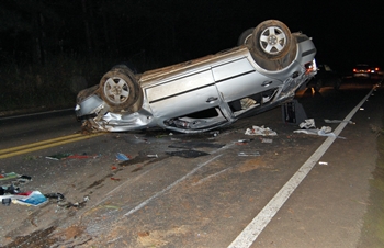 De acordo com informações, uma jovem identificada como F.B de 22 anos, se conduzia com o VW Golf placas MBU-4504 sentido Caçador/Rio das Antas, quando ao contornar uma curva, sentiu a necessidade de frear o veículo. No momento da frenagem o carro acabou perdendo a estabilidade e após rodar na pista acabou capotando, ficando atravessado sobre a via e com o rodado para cima.