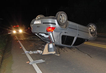 Um veículo capotou no início da noite deste domingo, 15, na SC 303, saída para Rio das Antas, O acidente aconteceu por volta das 19hrs nas proximidades da curva conhecida como Garganta do Diabo.