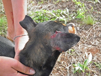 De acordo com informações, alguns adolescentes que frequenta um terreno baldio na Lages, Bairro Berger, para brincar, ouviram alguns gemidos e latidos baixos e suspeitaram que o animal pudesse estar enterrado no local. Andando pelo terreno, eles encontraram um buraco fundo, tapado com pedras e com restos de um sofá velho. “Quando encontramos o buraco ela já estava desmaiada”, contaram os jovens. “Tiramos ela do buraco e cortamos uma corda que estava lhe sufocando”, completou um dos meninos.