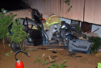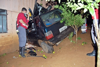Segundo informações Paulo Valfrido Recalcatte de 51 anos, se conduzia com o Fiat Uno placas LWX-9502 de Caçador pela Rua Amazonas sentido Rota/Centro, quando saiu da pista e invadiu um terreno particular e colidiu forte com o porão de uma casa. Com o impacto da batida, uma parede foi derrubada e parte do veículo ficou no interior de um dos quartos da moradia.