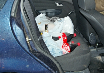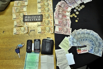 Com os indivíduos abordados foram efetuadas buscas pessoais e no interior do veículo, onde foram encontrados diversos produtos adquiridos em vários estabelecimentos. Com eles a PM também encontrou cinco notas de R$ 50,00 falsificadas e pelo menos R$ 125,00 em dinheiro, que eles provavelmente receberam de troco nos comércios por onde andaram.