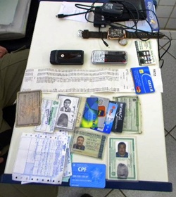 Ainda segundo a Civil, ele recebia os nomes falsos e os documentos do Rio de Janeiro por mensagens de celular, em seguida ele imprimia os comprovantes de residências pela internet. No seu celular havia vários nomes com CPF, que possivelmente ele utilizaria para praticar o crime.