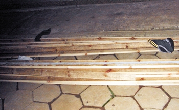 Rudinei Fernando Chaves, de 25 anos, vulgo como Padeirinho, foi encontrado na Rua Francisco Lopes de Souza, carregando um fardo de madeiras nas costas. Ao ser abordado ele confessou ter roubado as tabuas na referida obra e revelou á PM que havia mais dois comparsas indo mais a frente com a outra parte da madeira furtada.