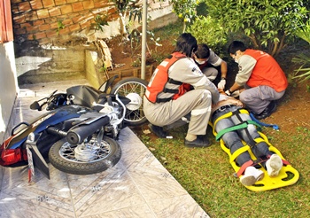 De acordo com a moradora da casa, um barulho muito forte foi ouvido e quando ela saiu para ver do que se tratava encontrou a mulher caída ao lado da moto próximo de sua porta.