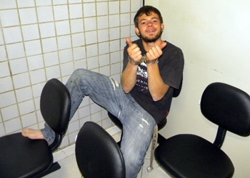 Já em sua residência o rapaz se exaltou com os policiais que foram ao local coletar dados para registrar a ocorrência. Descontrolado o jovem desacatava as guarnições e ameaçava investir contra os PMs. Devido a atitude insana e impulsiva do cidadão a PM lhe deu voz de prisão e o colocou no interior da viatura para conduzi-lo até a Delegacia, mas muito revoltado o rapaz acabou quebrando o vidro lateral traseiro da viatura tendo que ser contido pelas guarnições e transportado no camburão.