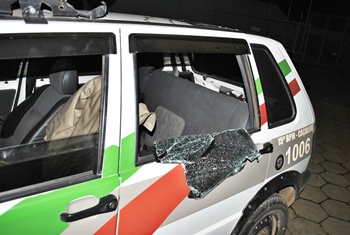 Quebrou o vidro da viatura, mas e dai, muitas vezes os brigadas quebram a cara de pessoas que não tem nada a ver que que é um vidro??? o mais tri da reportagem é a cara dele na foto, kkkk tri d boa!!!