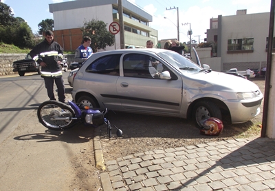 Uma colisão envolvendo uma motocicleta Honda POP e um GM Celta, no final da manhã desta quarta-feira, 27, resultou em duas pessoas feridas. O acidente aconteceu na Esquina das Ruas Fernando Machado e Sete de Setembro, proximidades da Câmara de Vereadores.